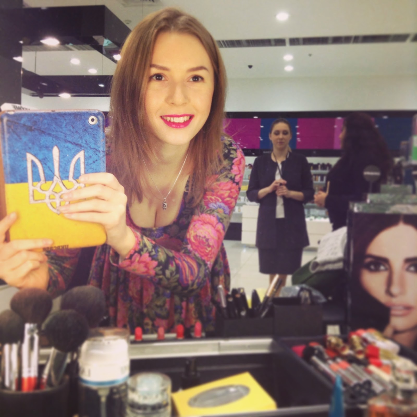 Еще до появления новинок в продаже Lancome пригласил меня на макияж; красила национальный визажист марки Анастасия Мехеда – вы можете часто видеть её в корнерах в Киеве, эти рыжие кудри не спутать ни с кем ) по моей просьбе Настя нарисовала The Брови и The Губы, а глаза чуть тронула тенями и тушью (в жизни я делаю макияж глаз редко и криво, поэтому такая схема мне комфортна и привычна). По-моему, просто загляденье!