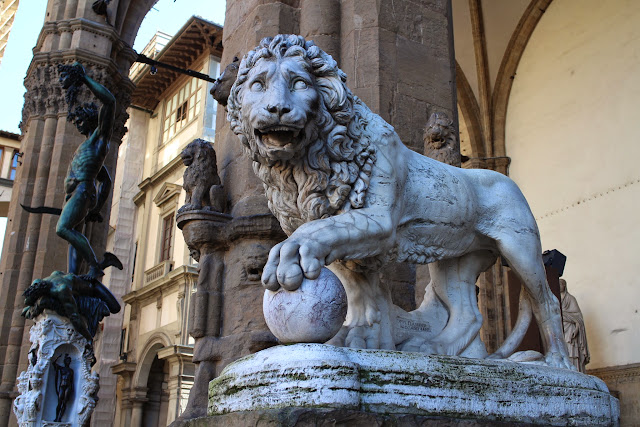 На сей раз всё о Флоренции. Она прекрасна и всегда такой будет. На прощание ещё несколько фото с Площади Синьории и Лоджии Ланци. Там мой дружище Лев, там с 1554 года бронзовый Персей с кровоточащей головой Горгоны Медузы (на затылке, на шлеме Персея скульптор Бенвенуто Челлини изобразил автопортрет, но туда мало какой фотоаппарат доберется - нужно смотреть своими глазами!), а с 1583-его беломраморный римлянин похищает сабинянку. У меня мурашки, когда представляю, к каким сокровищам там можно буквально прикоснуться. Они не за стеклом, не за решеткой, не под сигнализацией, даже не за бархатным шнуром - вот, просто протяни руку и дотронься!.. Доброй ночи, друзья )