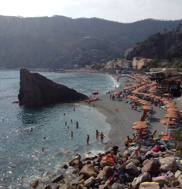 В Монтероссо хоть кино снимай - тесные кривые переулки, галька размером с собаку, крутые подъемы-спуски, столики на летних площадках - и те под наклоном, солнце из всех щелей, дорогое меню на условно "главных" улицах, дешево и вкусно до слёз в ресторанчиках за углом.