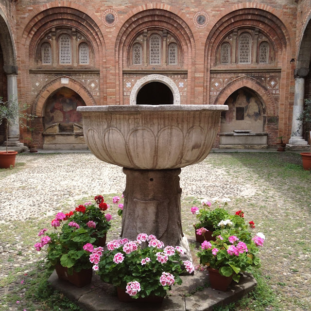 Снаружи вы видите единое сооружение, но за дверями - целый комплекс двориков, построек и зданий внутри зданий. Святой Петроний хотел построить мини-Иерусалим, потому Семь Церквей отображают евангельские святыни - Распятие, Святую Троицу, воды Иордана, Голгофу. Есть даже Храм Гроба Господня размером с двухэтажный домик, он и стал местом захоронения самого Петрония. Я каждый раз иду в одно и тоже место, Дворик Пилата с водруженной посреди чашей - копией той самой, где Понтий Пилат совершил ритуальное омовение рук, как бы слагая с себя ответственность за казнь Христа. Об этом можно почитать в Евангелии от Матфея - или в "Мастере и Маргарите".